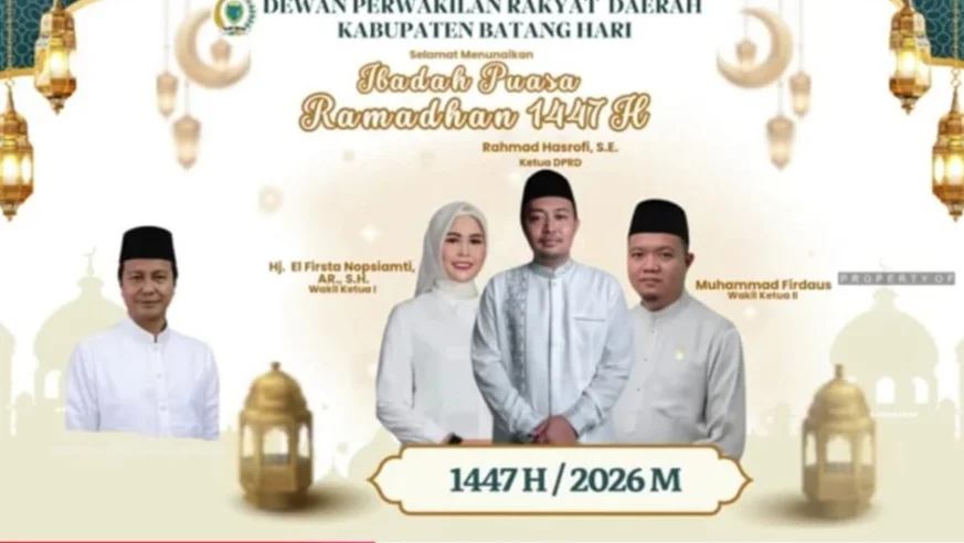 NEWSINFO.ID, BATANG HARI – Marhaban ya Ramadan. Segenap Ketua dan Anggota DPRD Kabupaten Batangh Hari mengucapkan selamat menunaikan puasa Ramadan 1447 Hijriah/2026 Masehi.