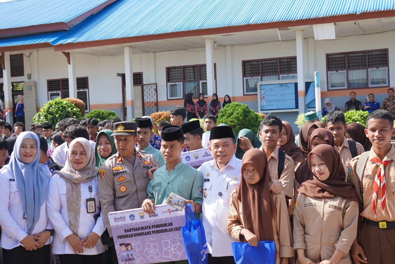 NEWSINFO.ID, MESTONG – Gubernur Jambi Dr. H. Al Haris, S.Sos, MH menyerahkan bantuan dana Dumisake untuk pendidikan jenjang SMA, SMK dan SLB tahun 2025, di SMAN 3 Muaro Jambi, Kecamatan Mestong, Kabupaten Muaro Jambi sebagai bagian dari komitmen Pemerintah Provinsi Jambi untuk meningkatkan kualitas pendidikan di Provinsi Jambi, Rabu (29/10/2025) siang.