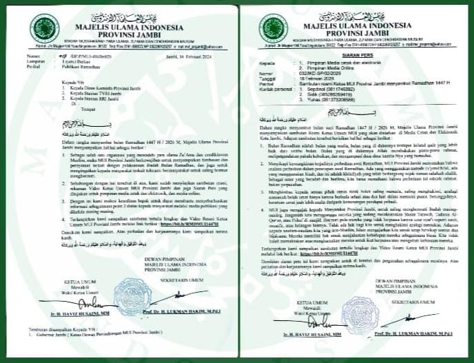MUI berharap dengan terbitnya seruan ini, suasana Ramadhan 1447 H di Jambi dapat berjalan dengan penuh kekhusyukan, kedamaian, dan menjadi ladang pahala bagi semua pihak yang terlibat dalam menjaga kondusivitas daerah. (*)