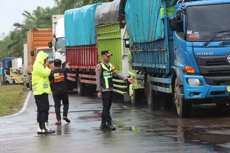“Kami menertibkan kendaraan angkutan barang sumbu tiga ke atas sesuai dengan Surat Keputusan Bersama (SKB) tiga menteri tentang pembatasan operasional truk angkutan barang. Kendaraan yang masih nekat beroperasi kami kandangkan hingga pemberlakuan SKB berakhir pada 29 Maret 2026 mendatang,” ujar Kompol Azmi kepada wartawan, Sabtu (14/3/2026).