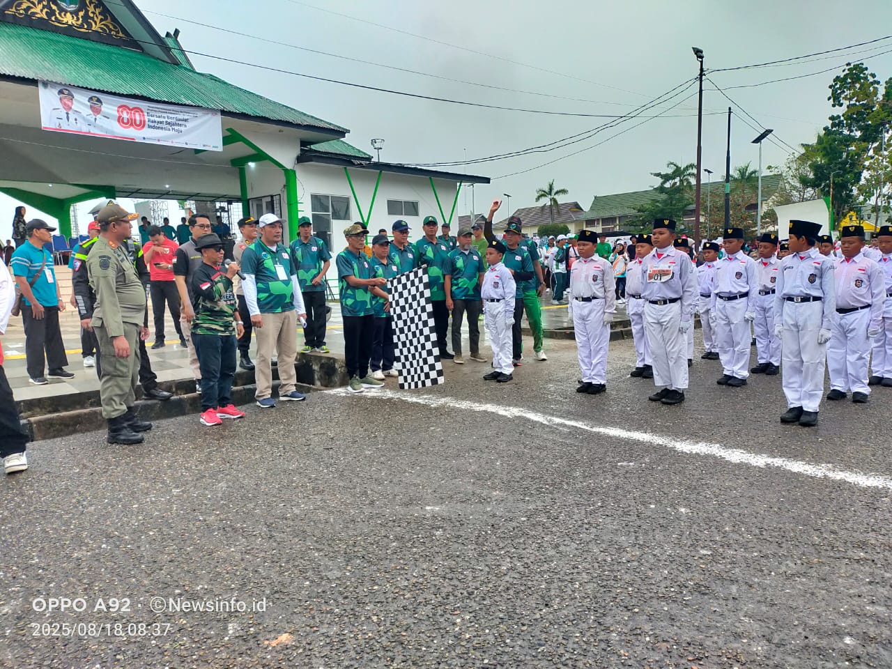NEWSINFO.ID, BATANG HARI – Wakil Bupati Batang Hari Bakhtiar lepas peserta Pawai Pembangunan HUT RI Ke-80 ditengah guyuran hujan gerimiis, Senin (18/08/2025).
